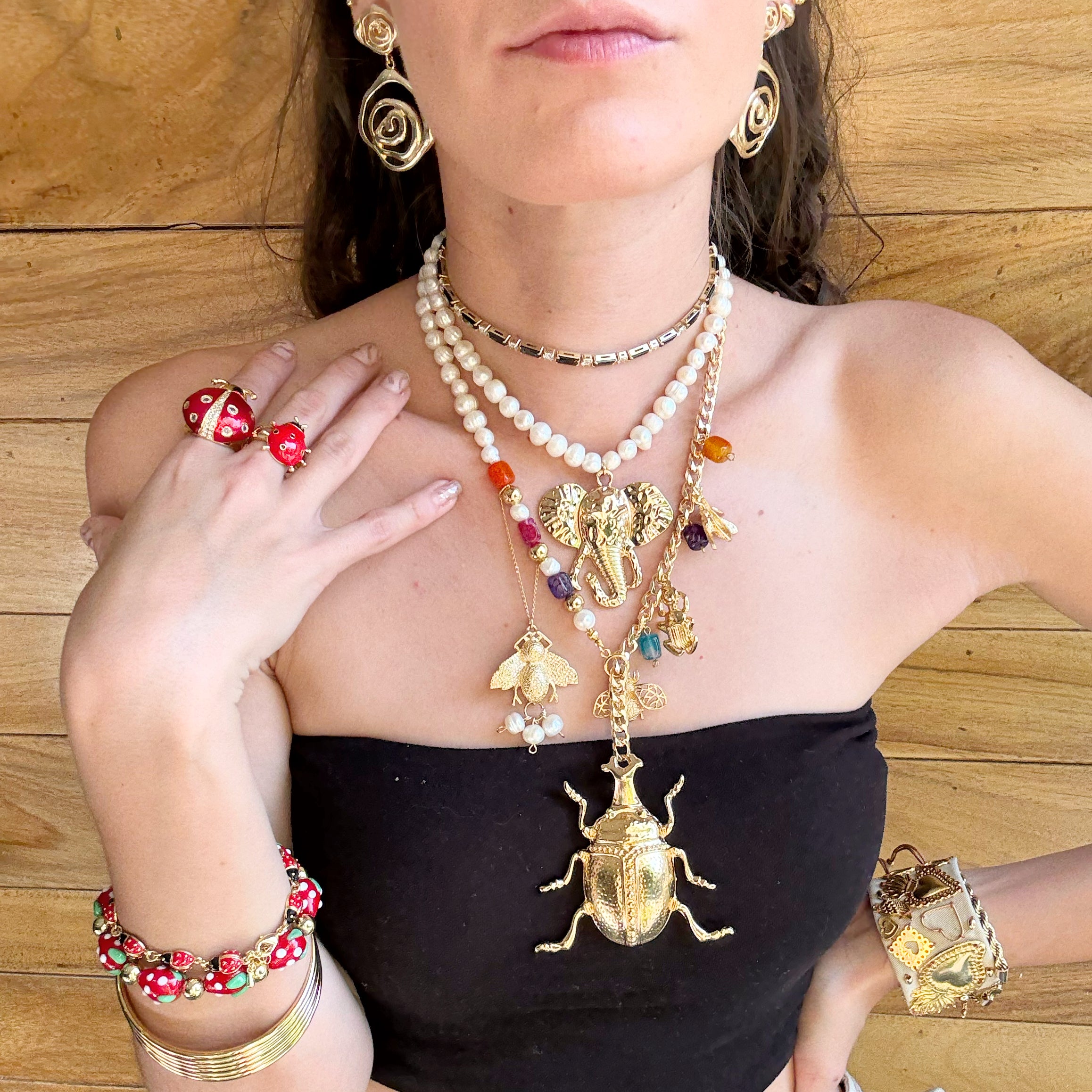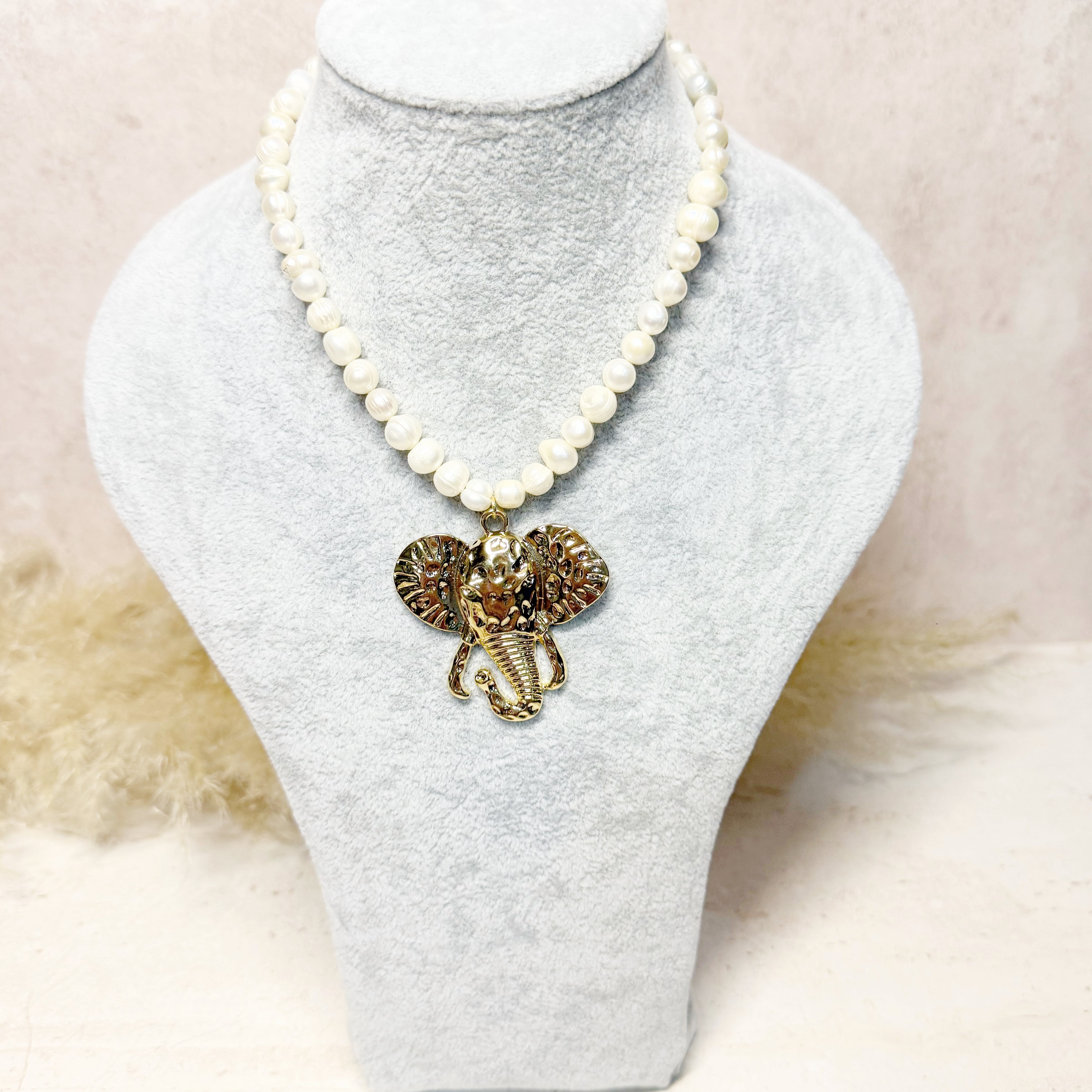 Gargantilla hecha a mano con perla natural y dije de laminado de oro.