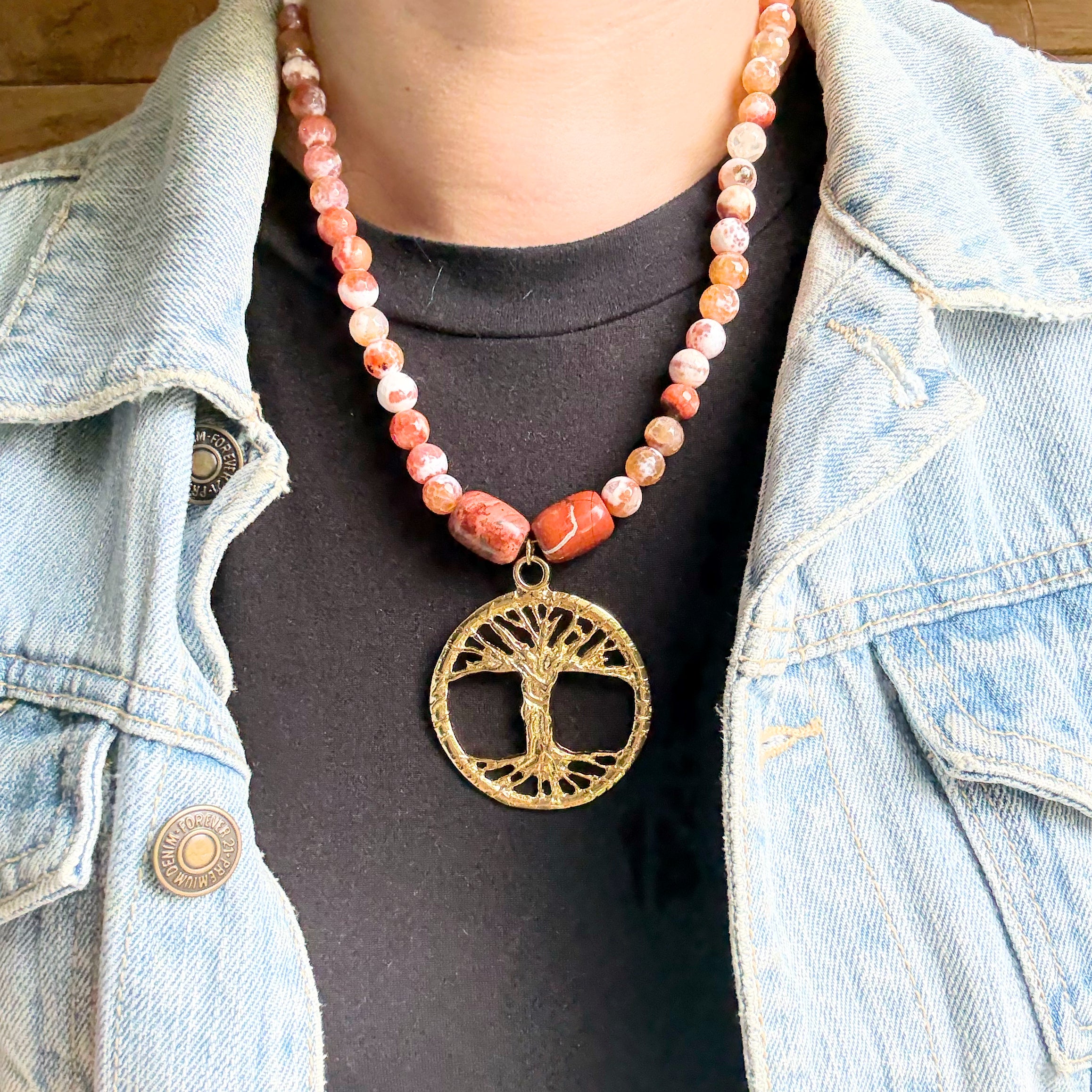 Gargantilla con piedras naturales con dije de árbol de la vida.