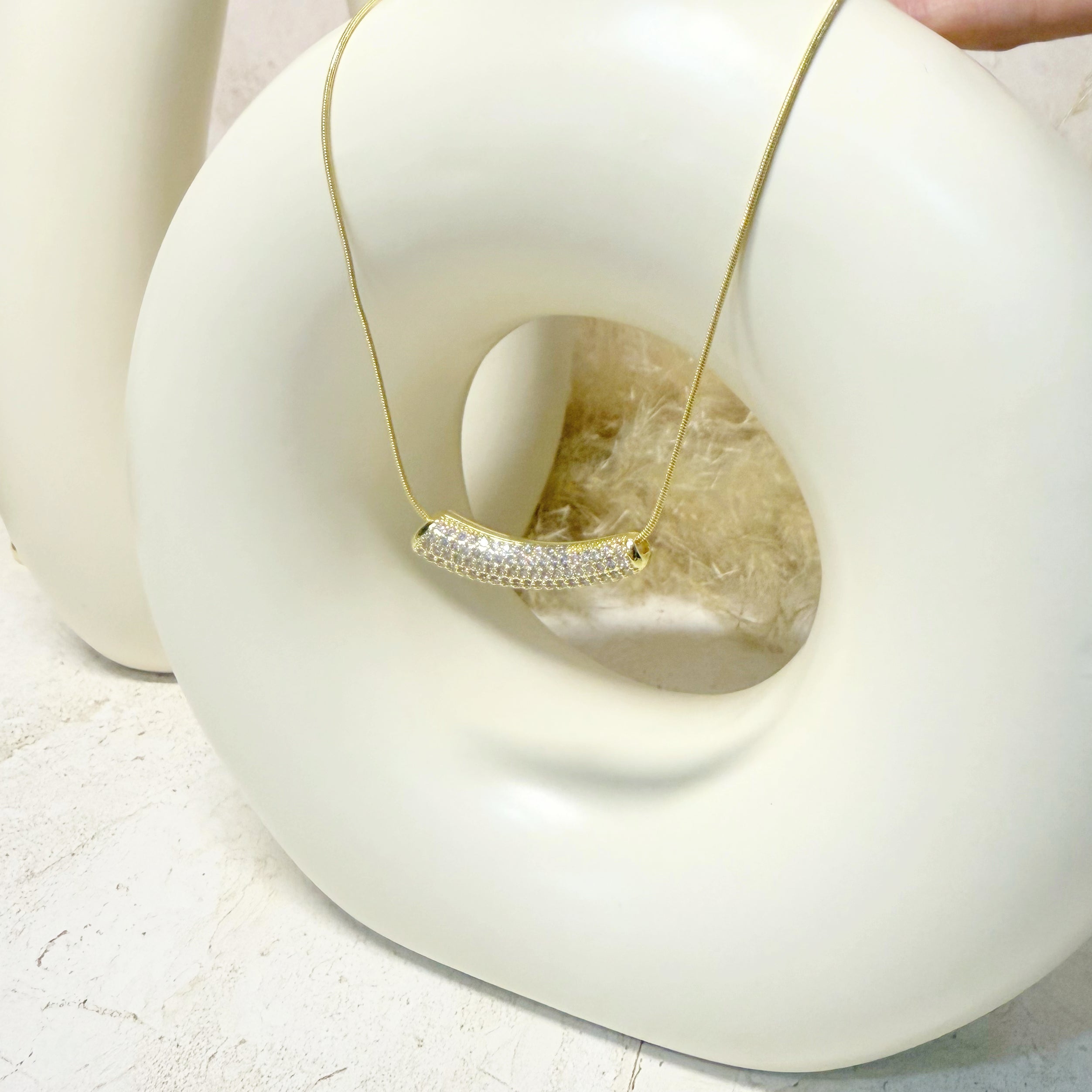 Gargantilla de chapa de oro 18k con barra y zirconias blancas.