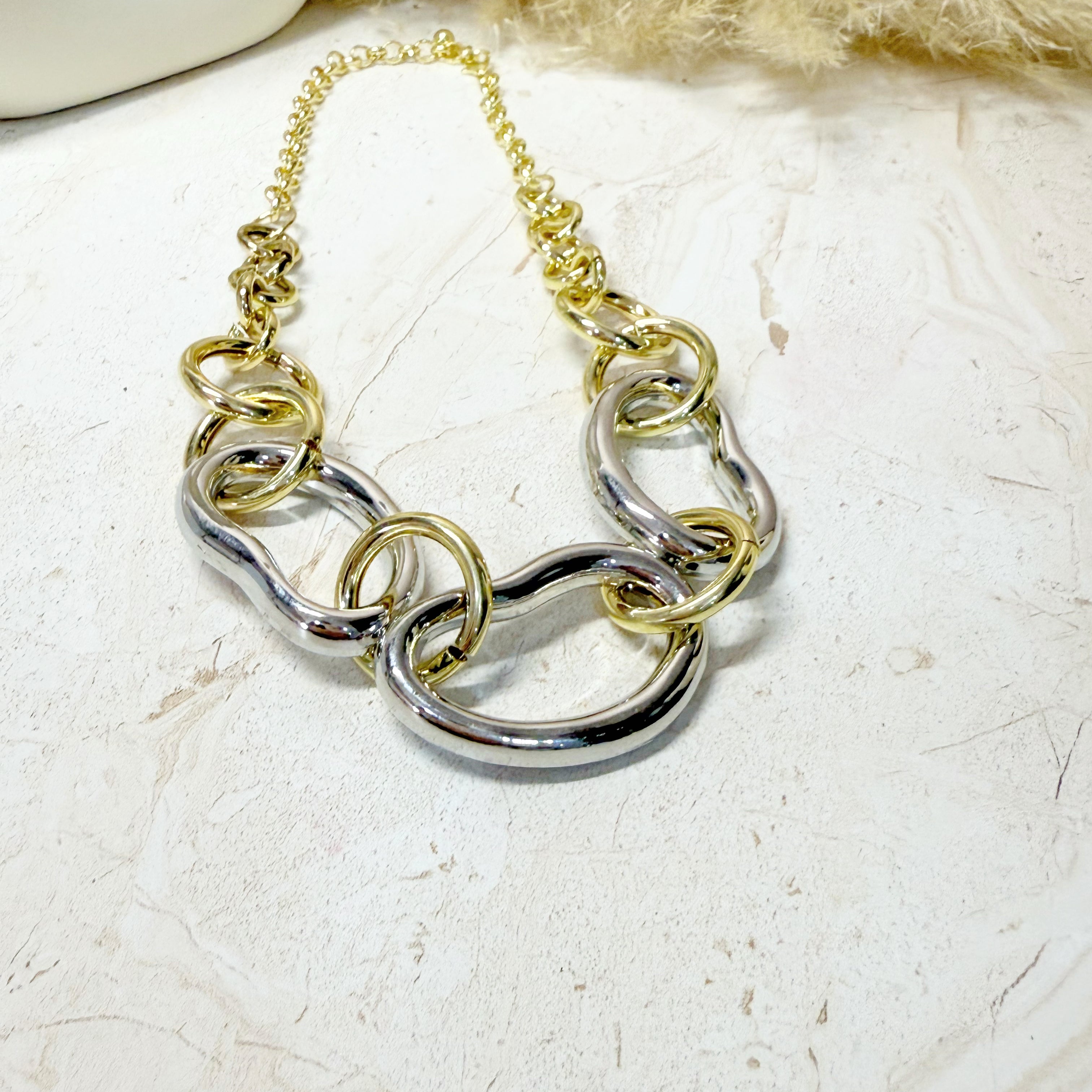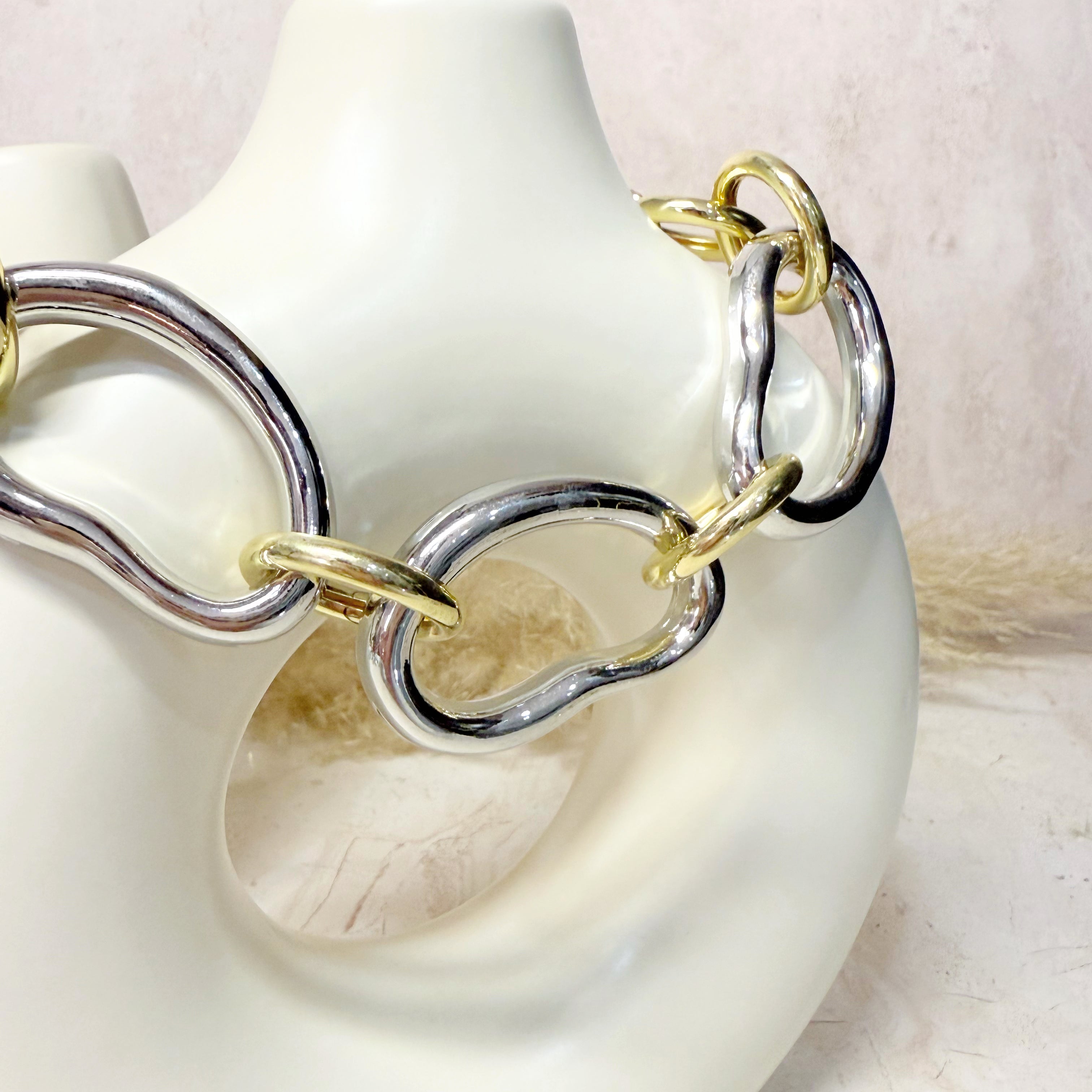 Cadena chunky bicolor rodio y chapa de oro 18k.