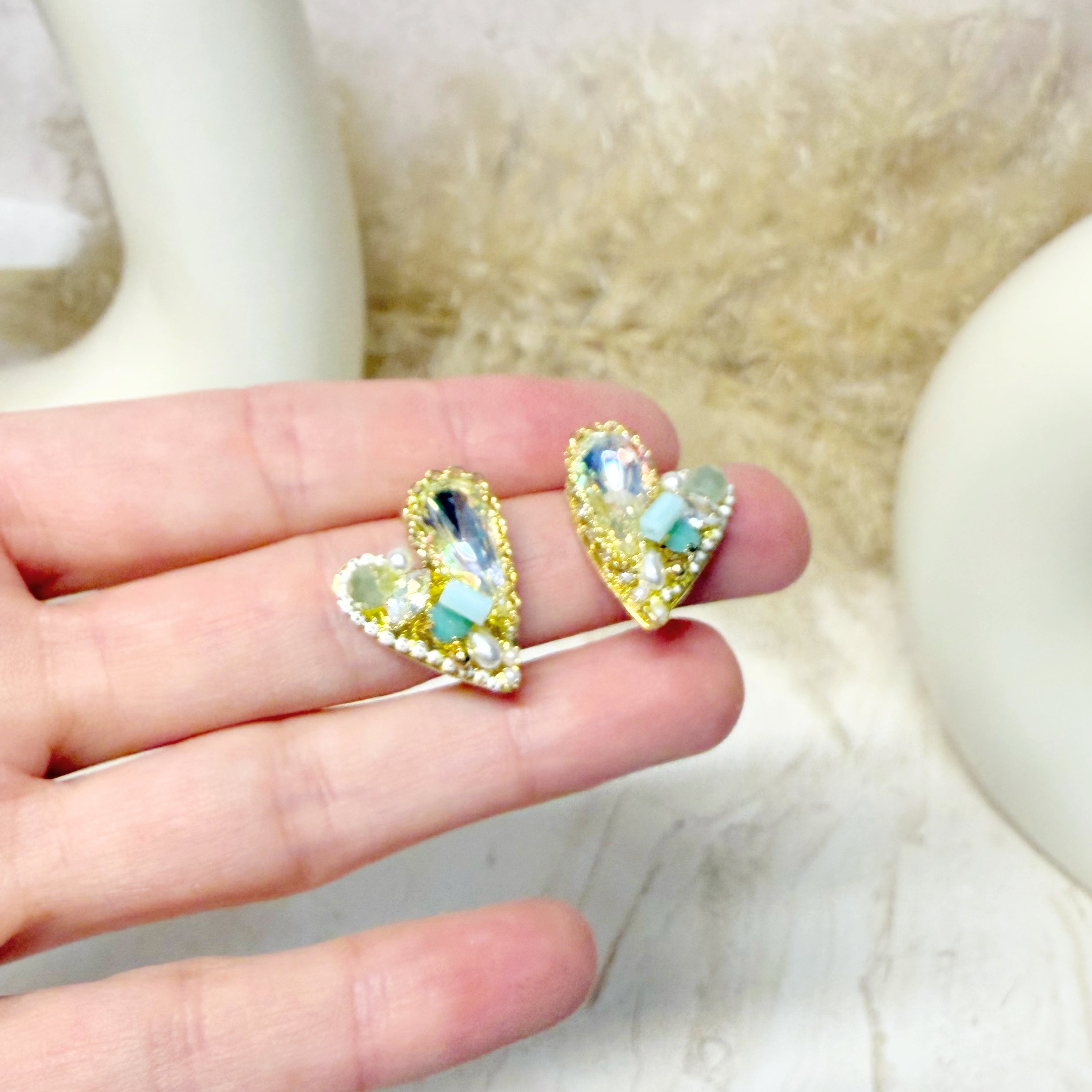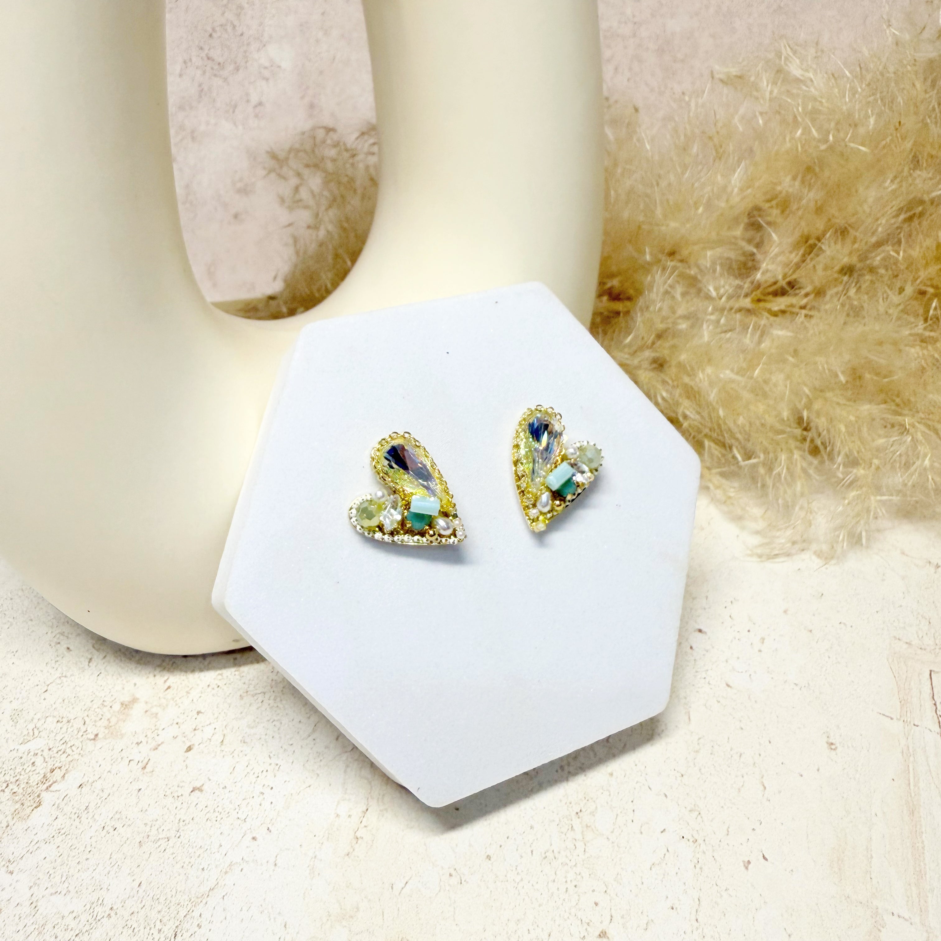 Aretes corazón con piedras. Chapa de oro 18k
