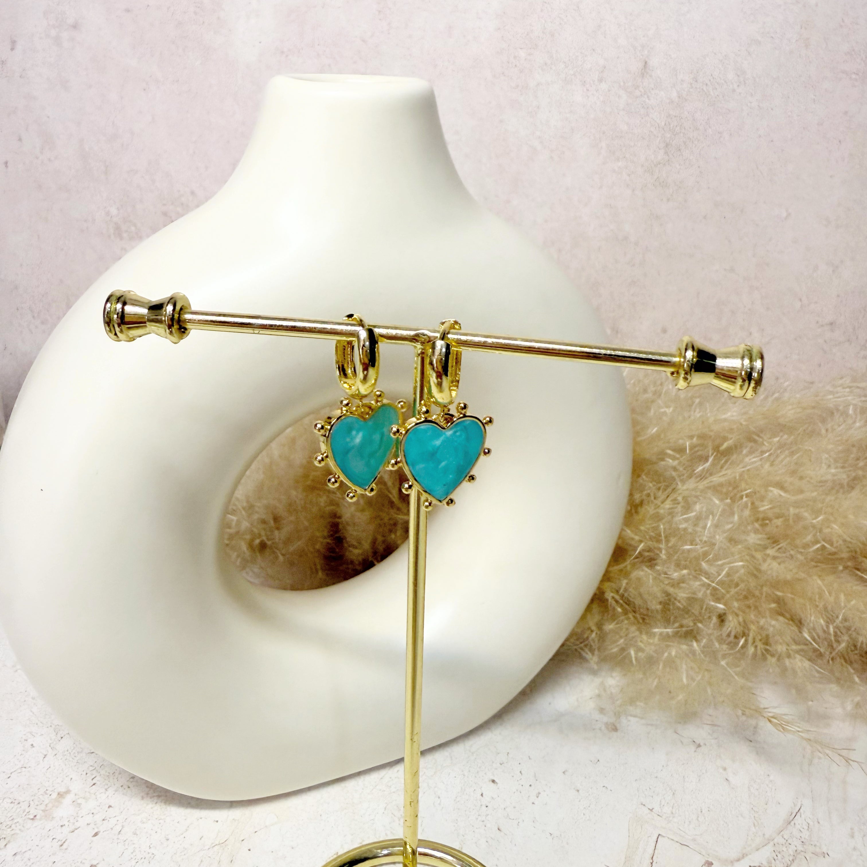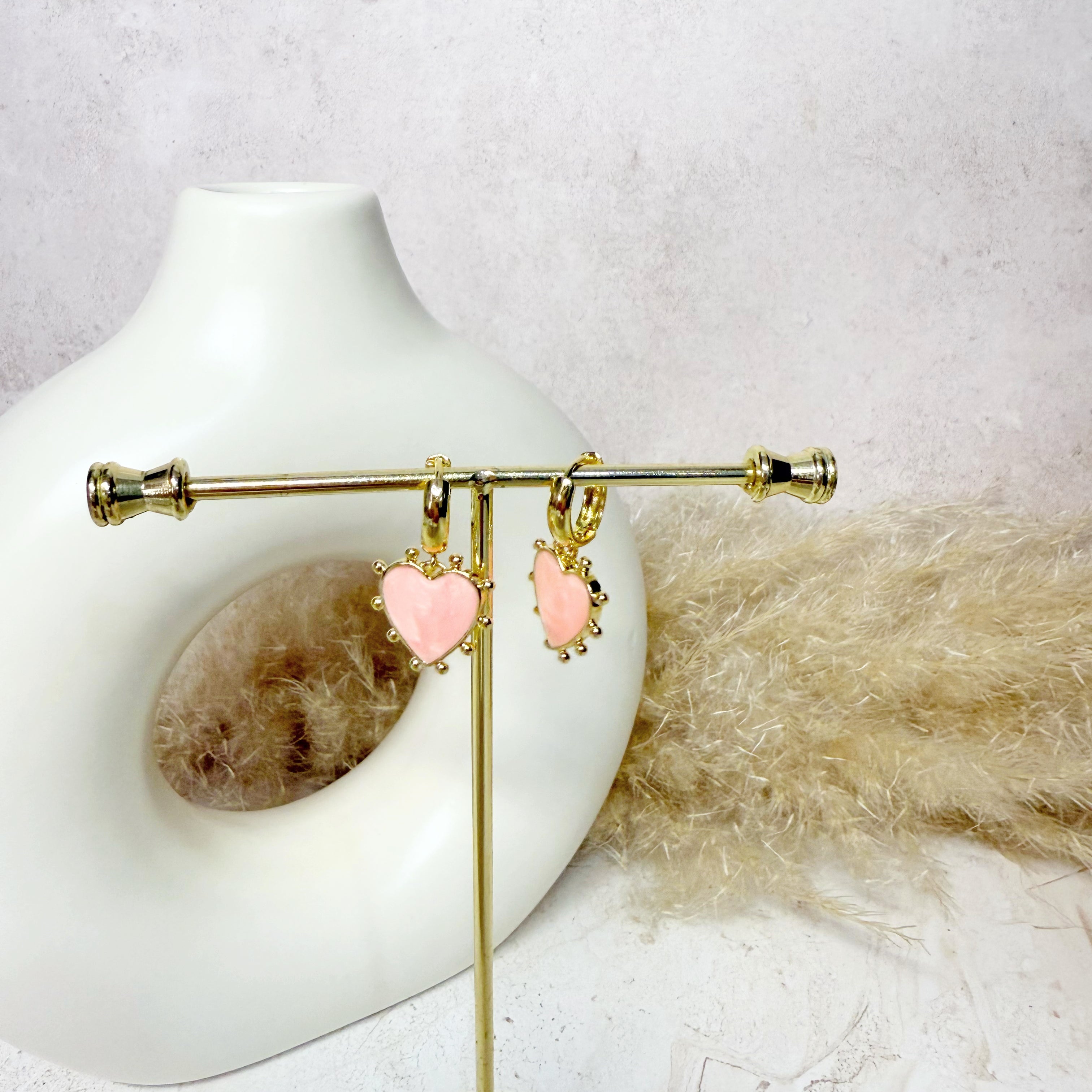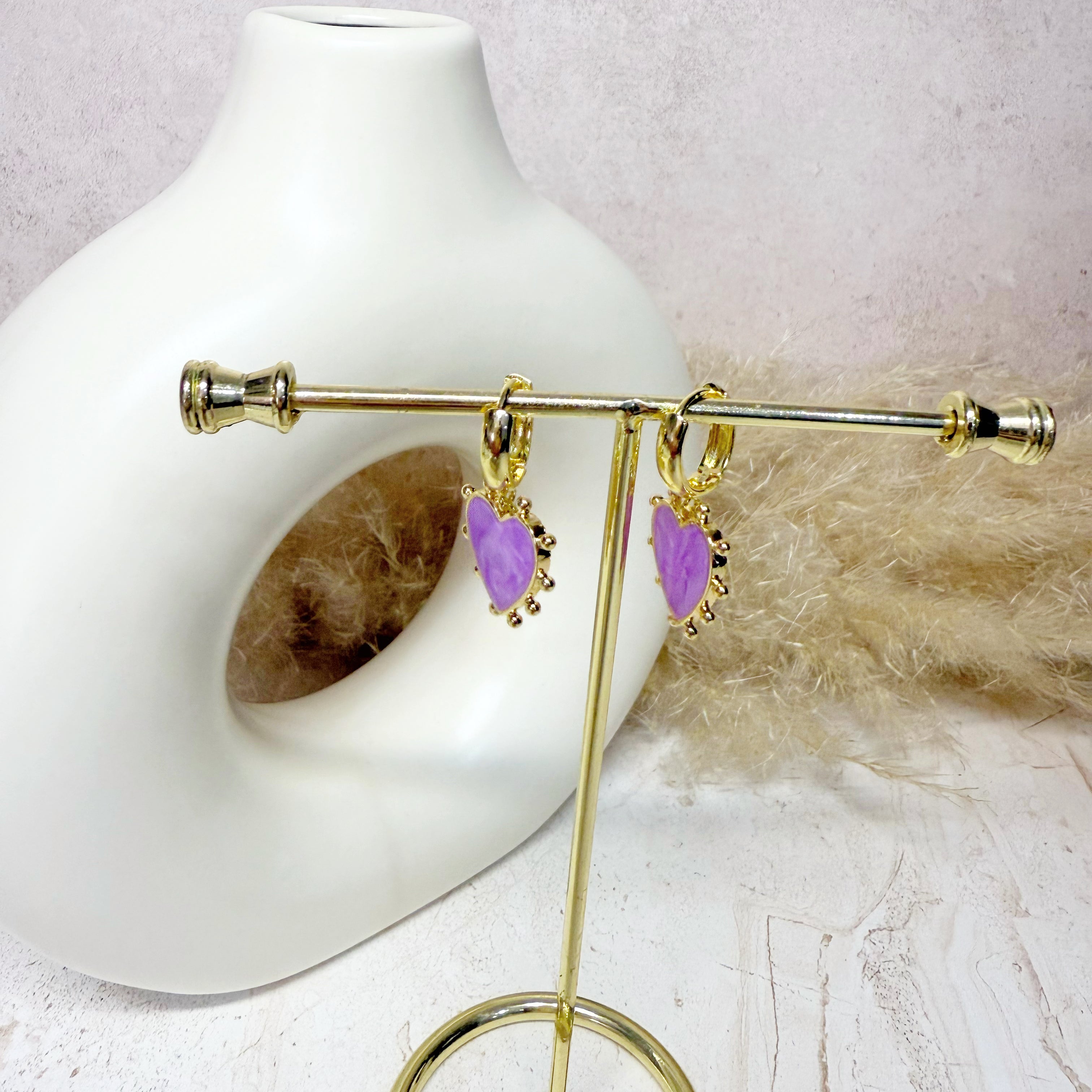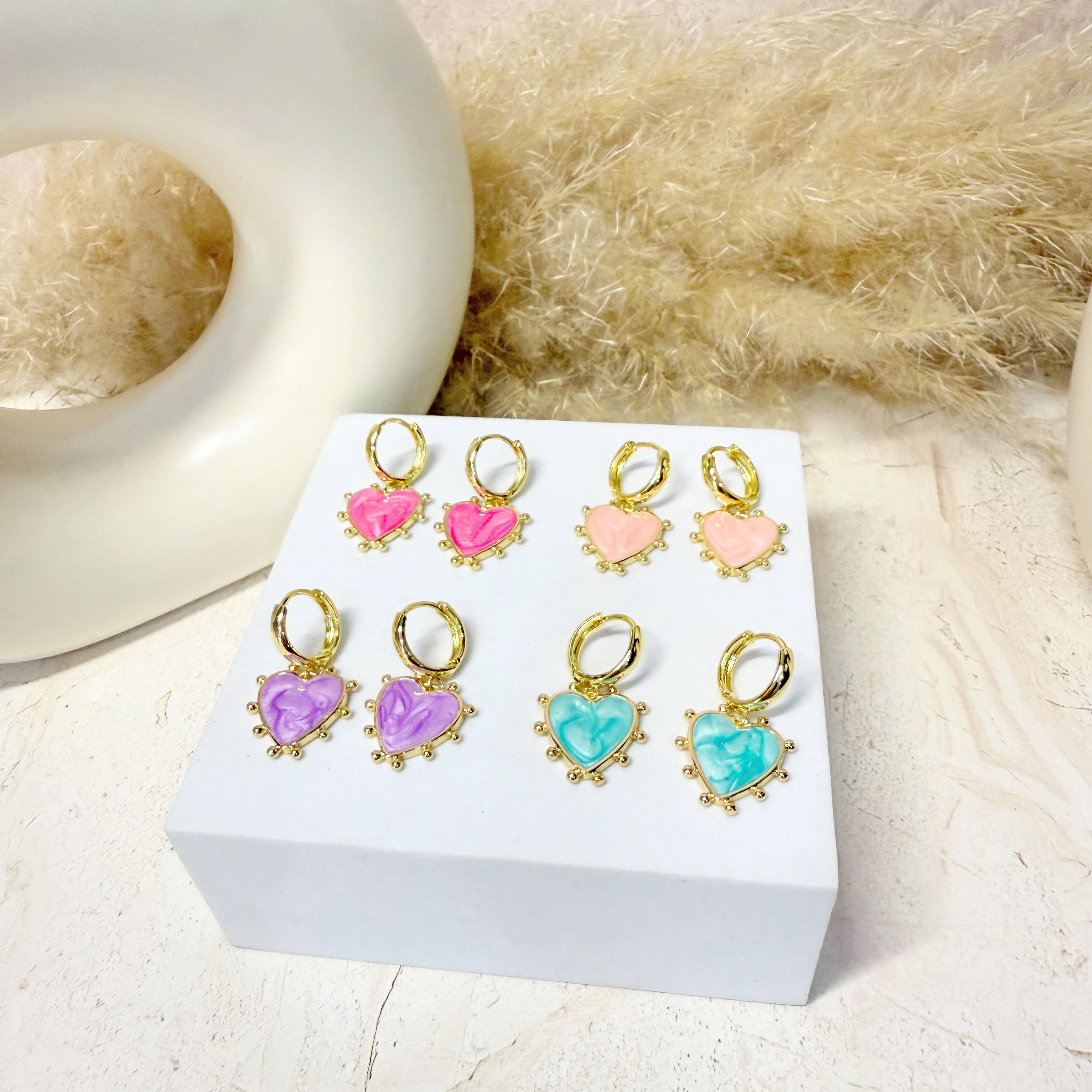 Huggies con dije de corazón con esmalte de colores. Escoge tu color favorito