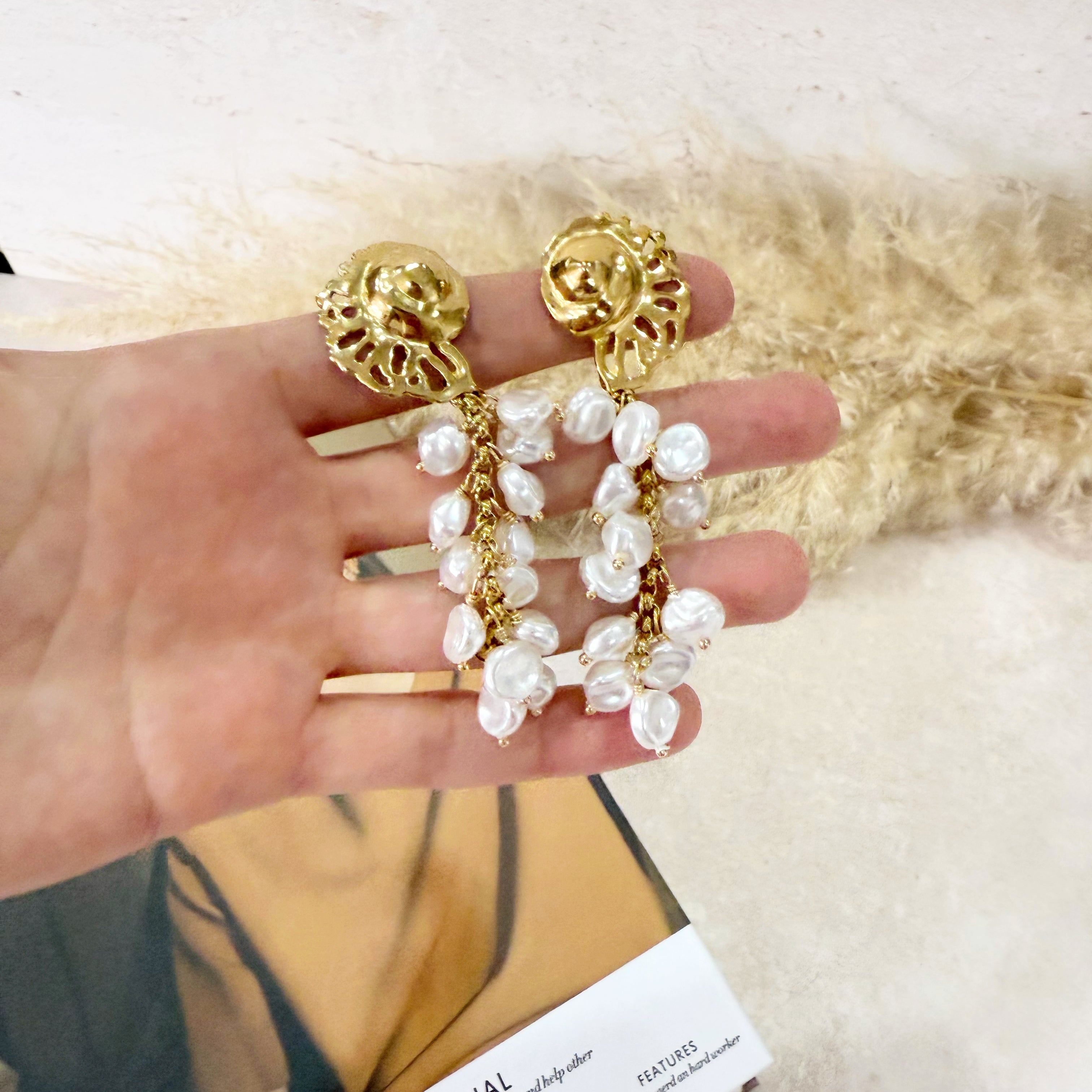 Aretes de acero inoxidable con imitación perla con un caracol.