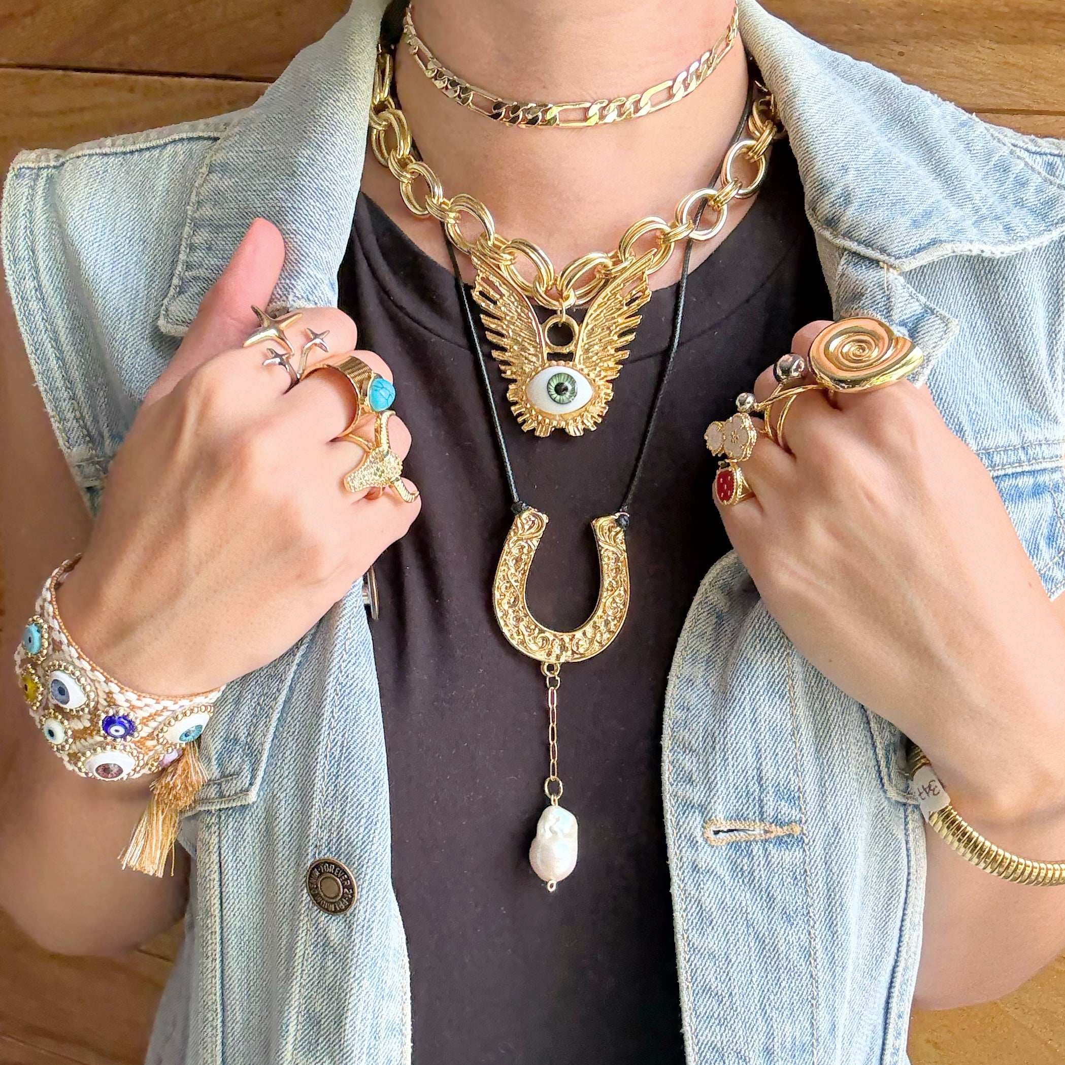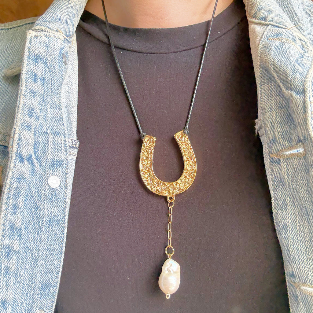 Gargantilla de herradura con perla natural. Chapa de oro 18k