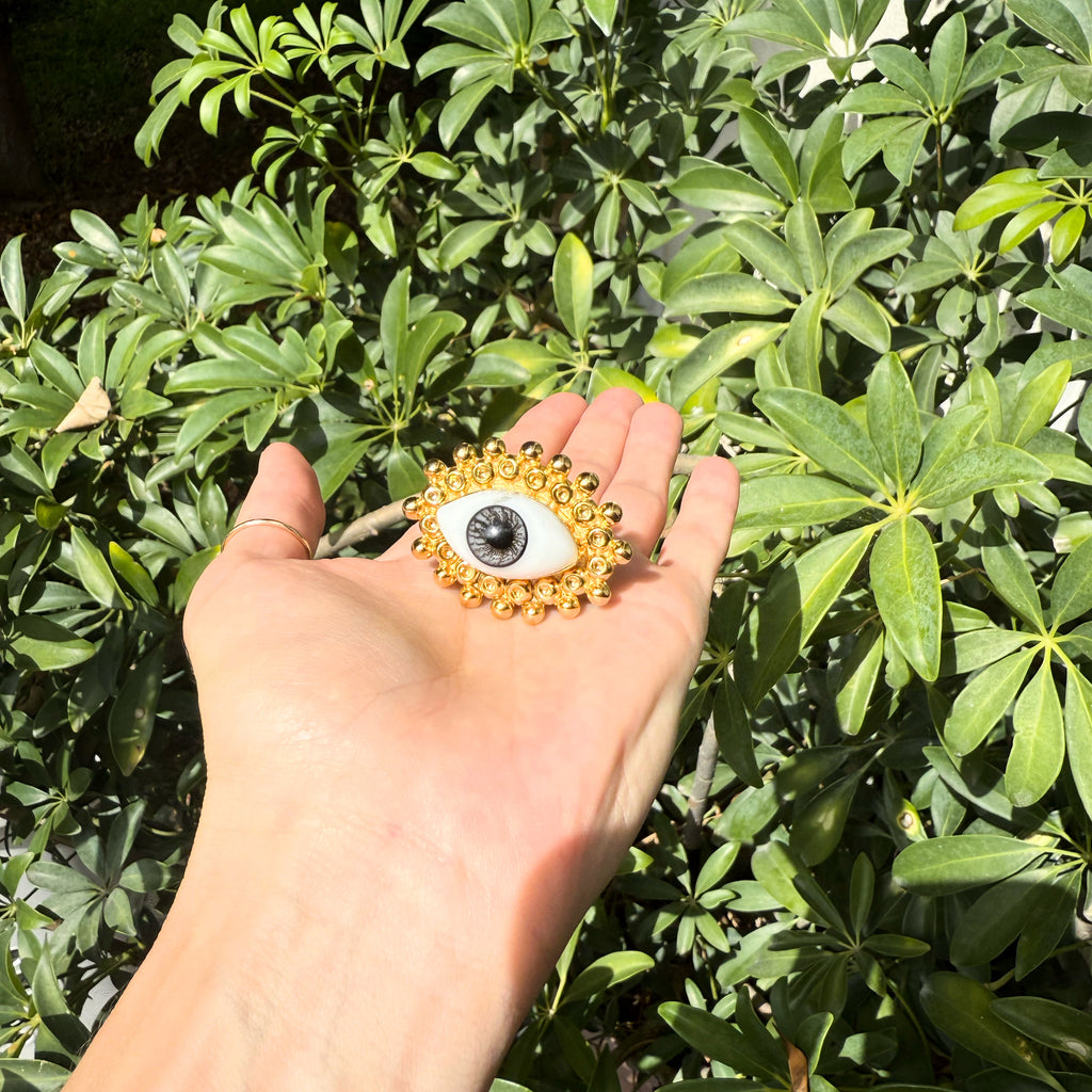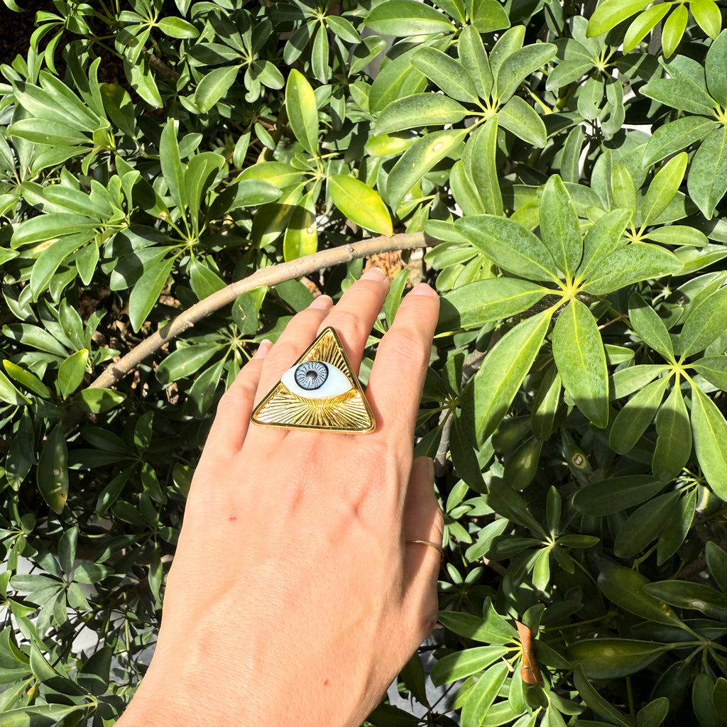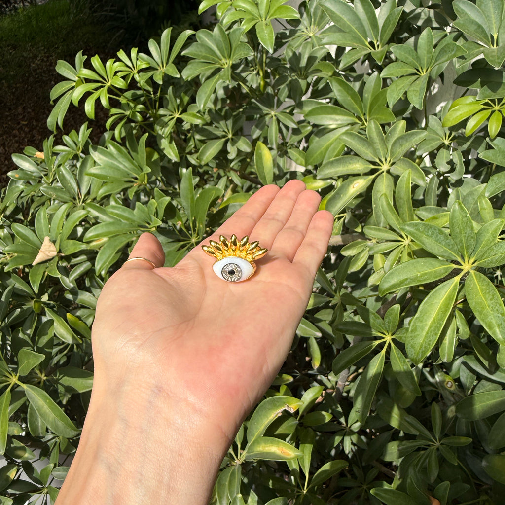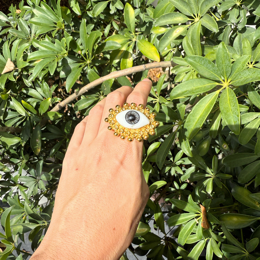 Anillos de oro laminado con ojo de cristal pintano a mano.