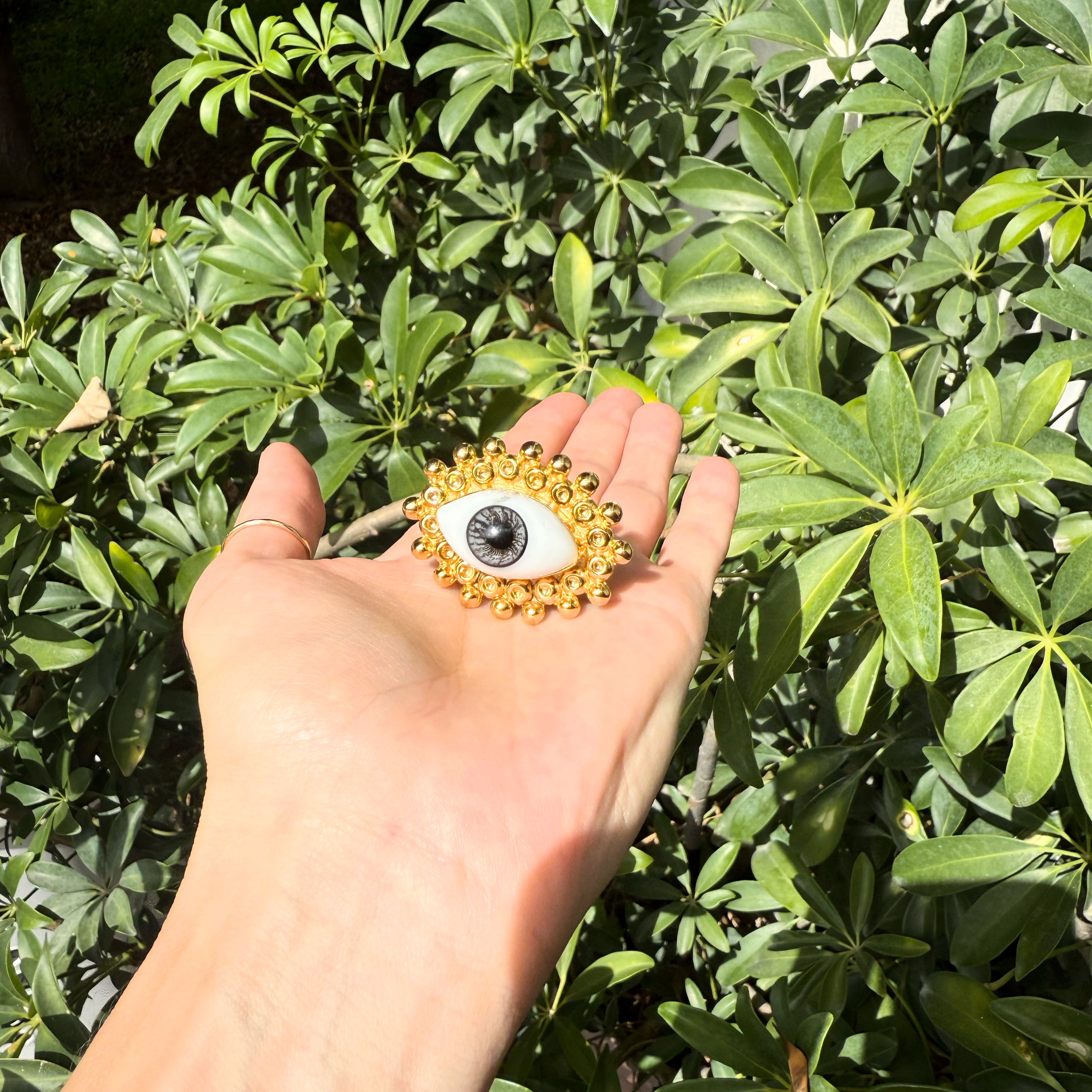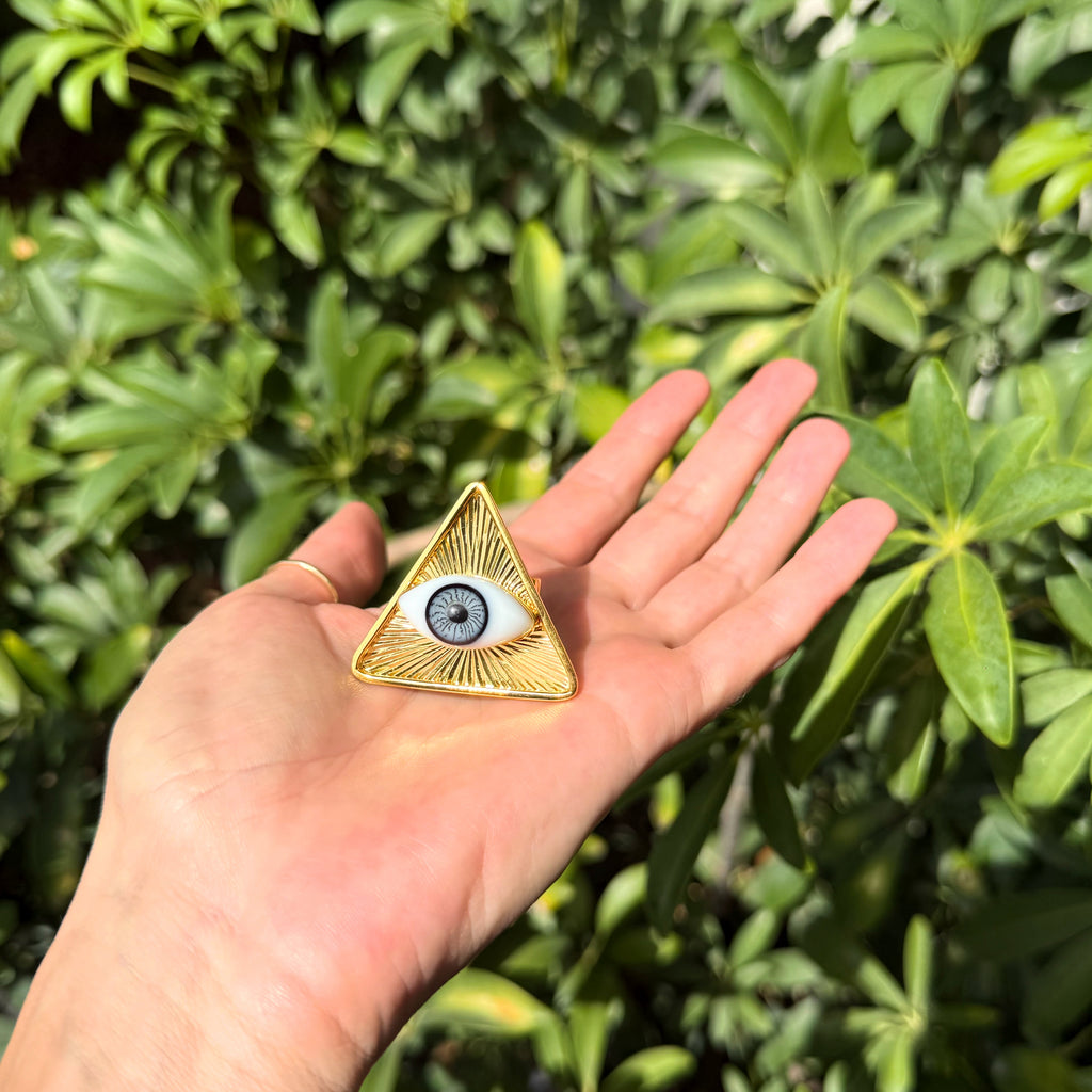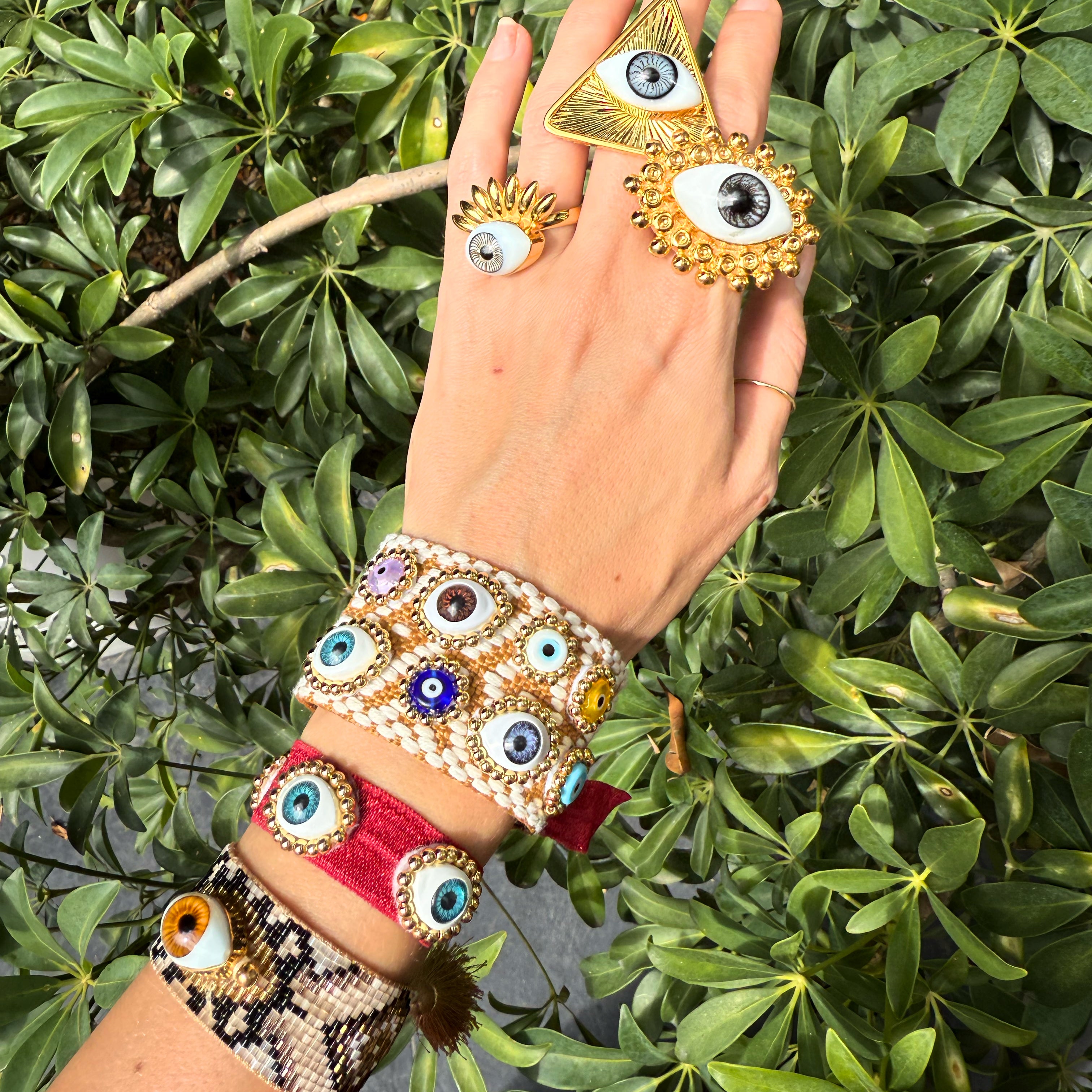Anillos de oro laminado con ojo de cristal pintano a mano.